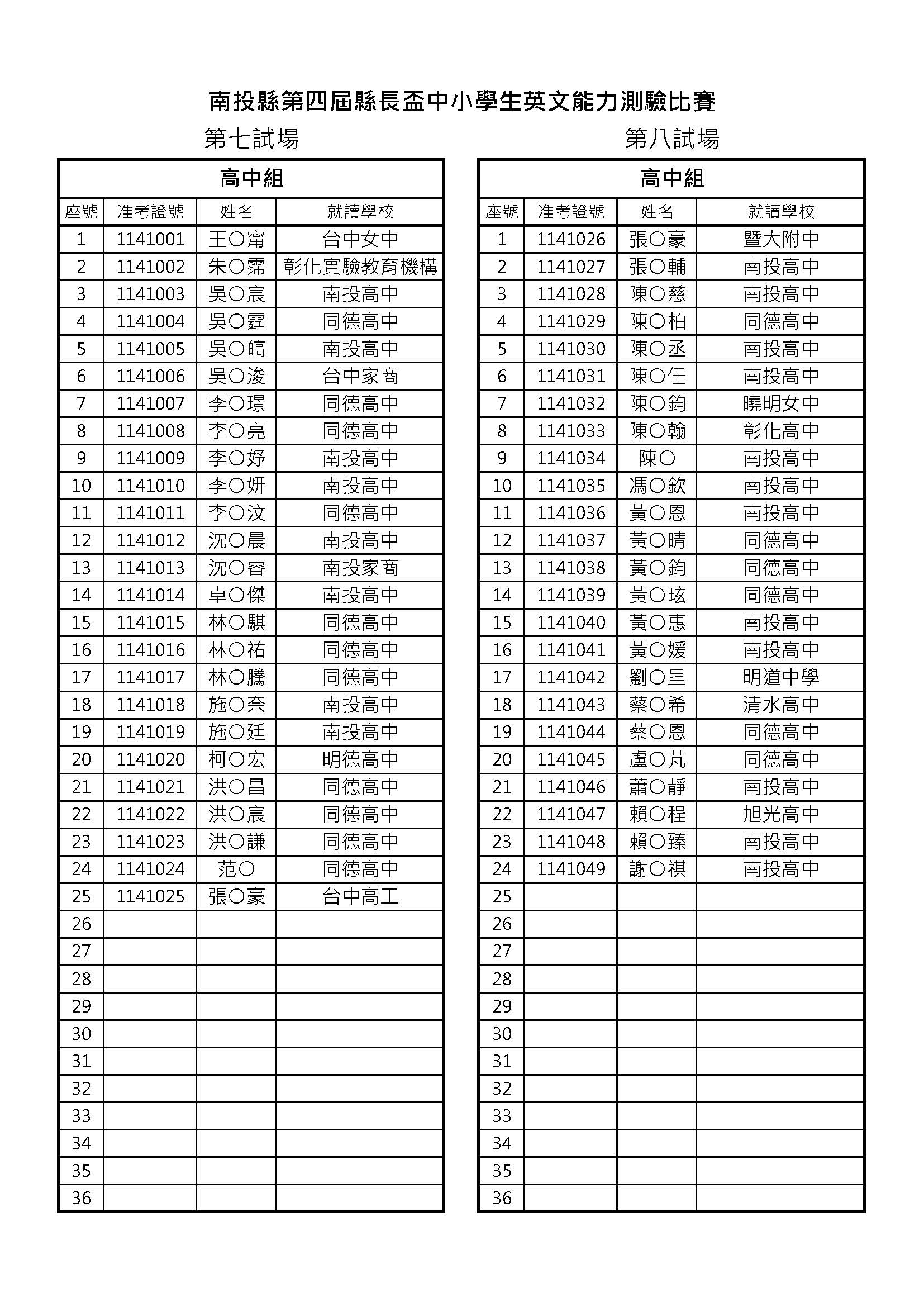應考資訊(含考生注意事項、應試號碼、試場分配表等)