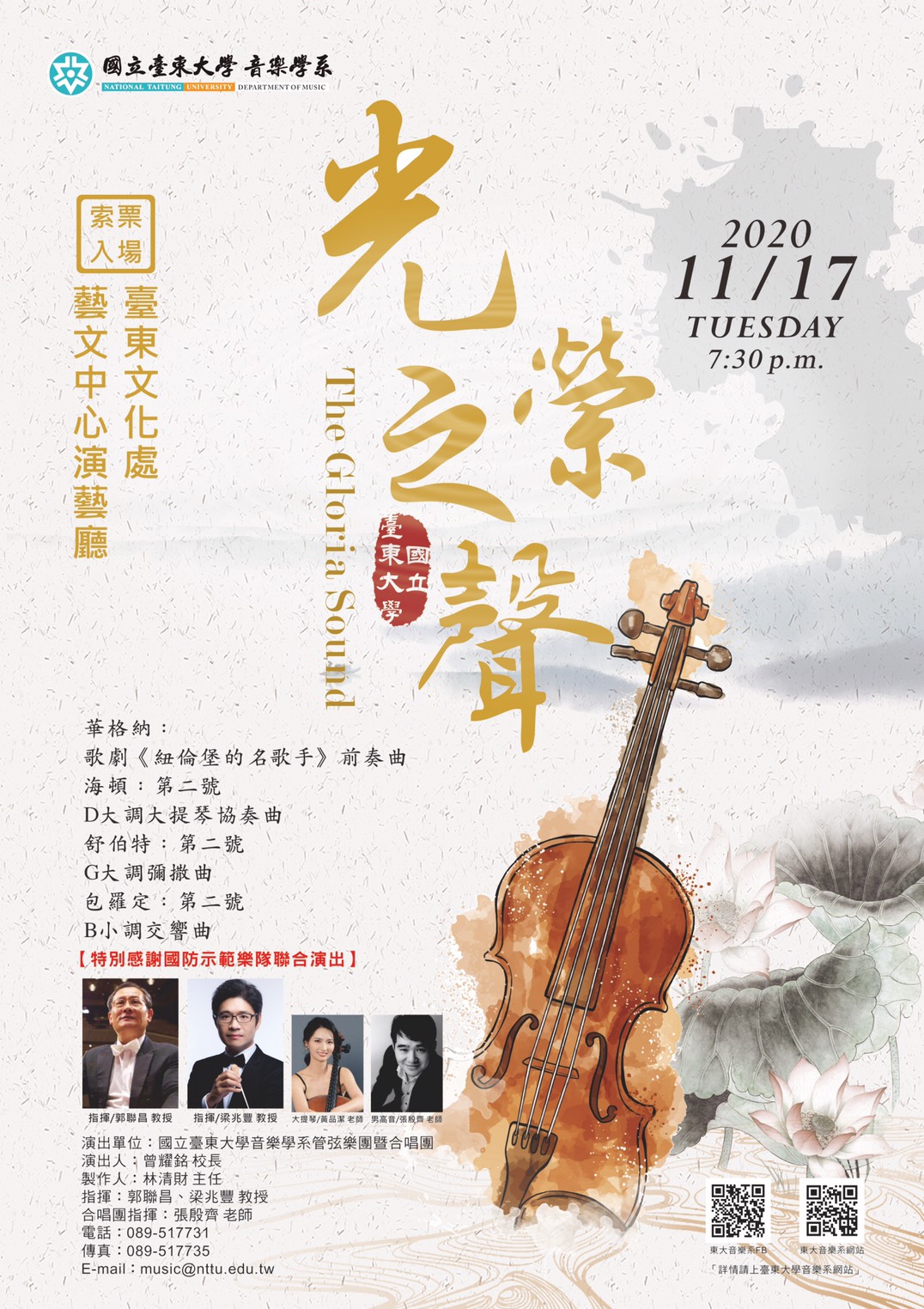 國立台東大學音樂學系109年度「光榮之聲The Gloria Sound」管弦合唱音樂會演出宣傳資料