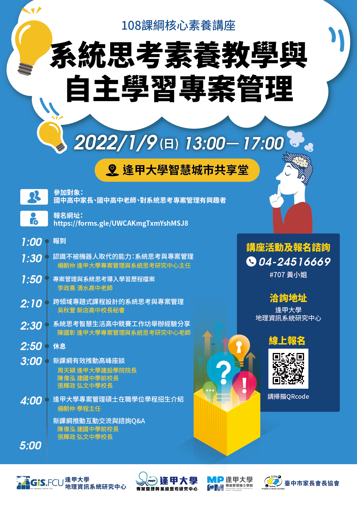 逢甲大學辦理「108課綱核心素養講座-系統思考素養教學與自主學習專案管理用」