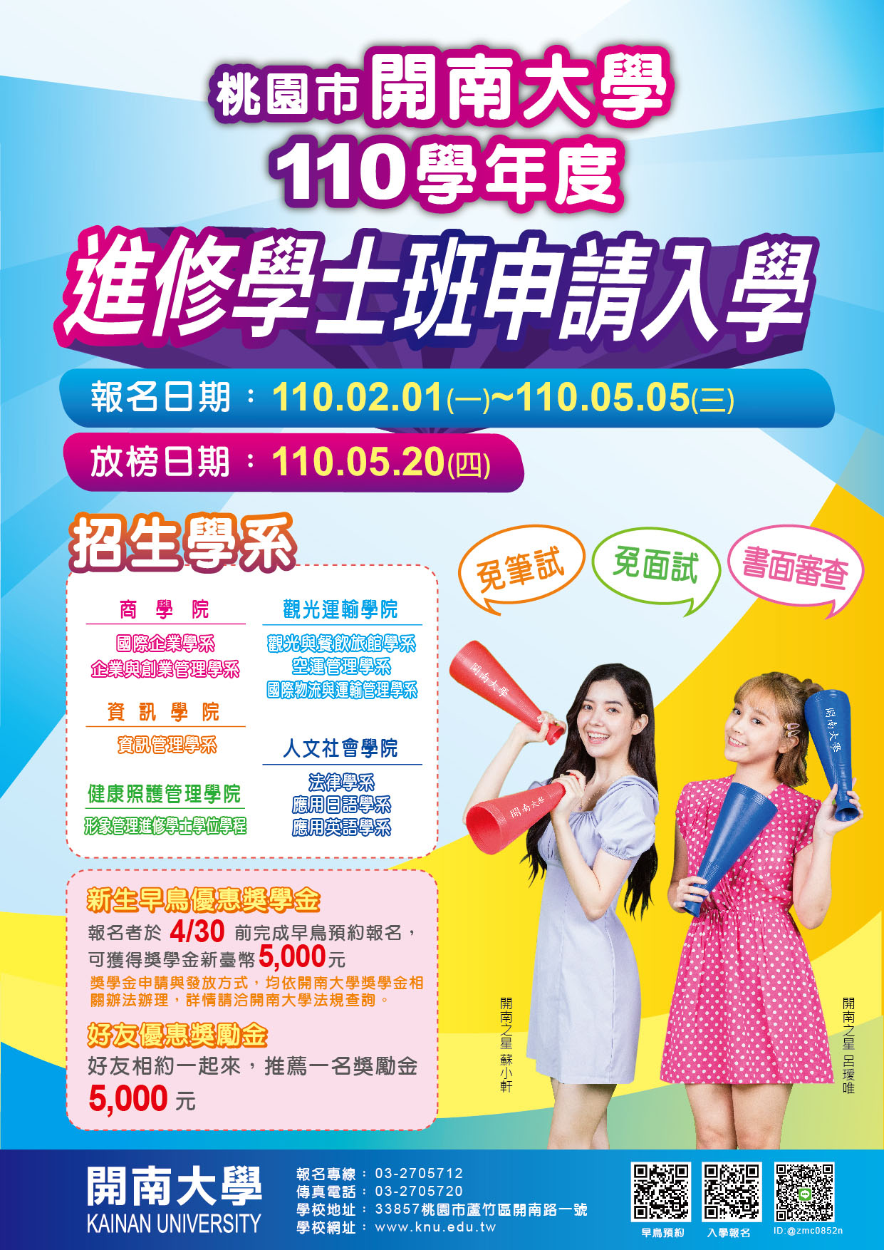 三、本招生一律採網路報名,報名日期:自110年2月1日(一)上午9時起至110年3月3日(三)下午5時止。